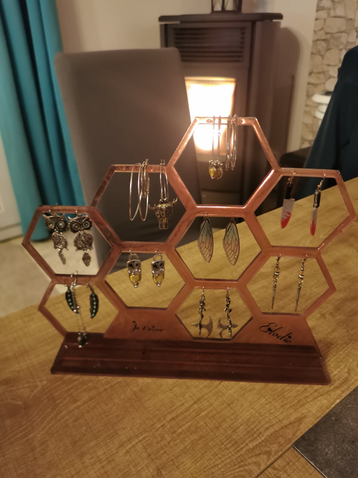 💎Présentoir à bijoux en résine, fait main, au design original en forme de nid d’abeille 🐝