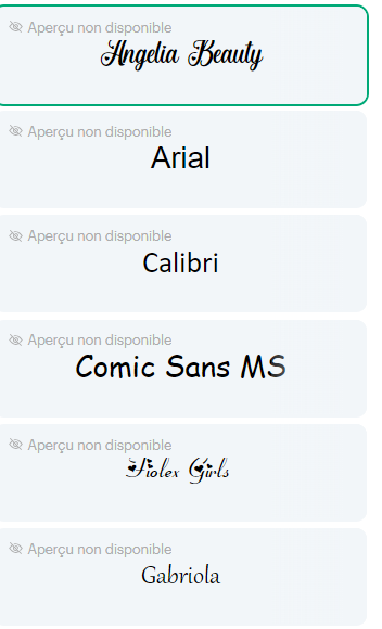 Voir photo du produit pour les différentes polices d'écritures