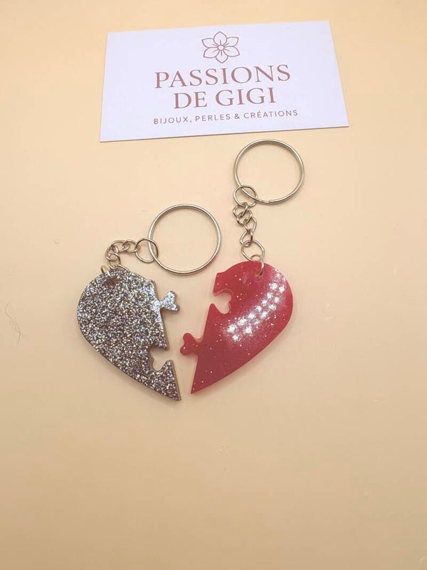 Duo de porte-clés cœur puzzle pailleté – Idée cadeau couple / amis - réf 226