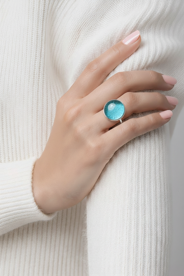 Bague en résine turquoise – Style moderne & élégant - réf 230