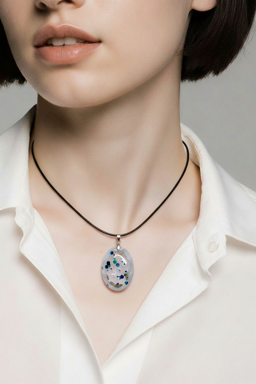 Pendentif en résine avec éclats de verre – Bijou artisanal unique - Réf 116