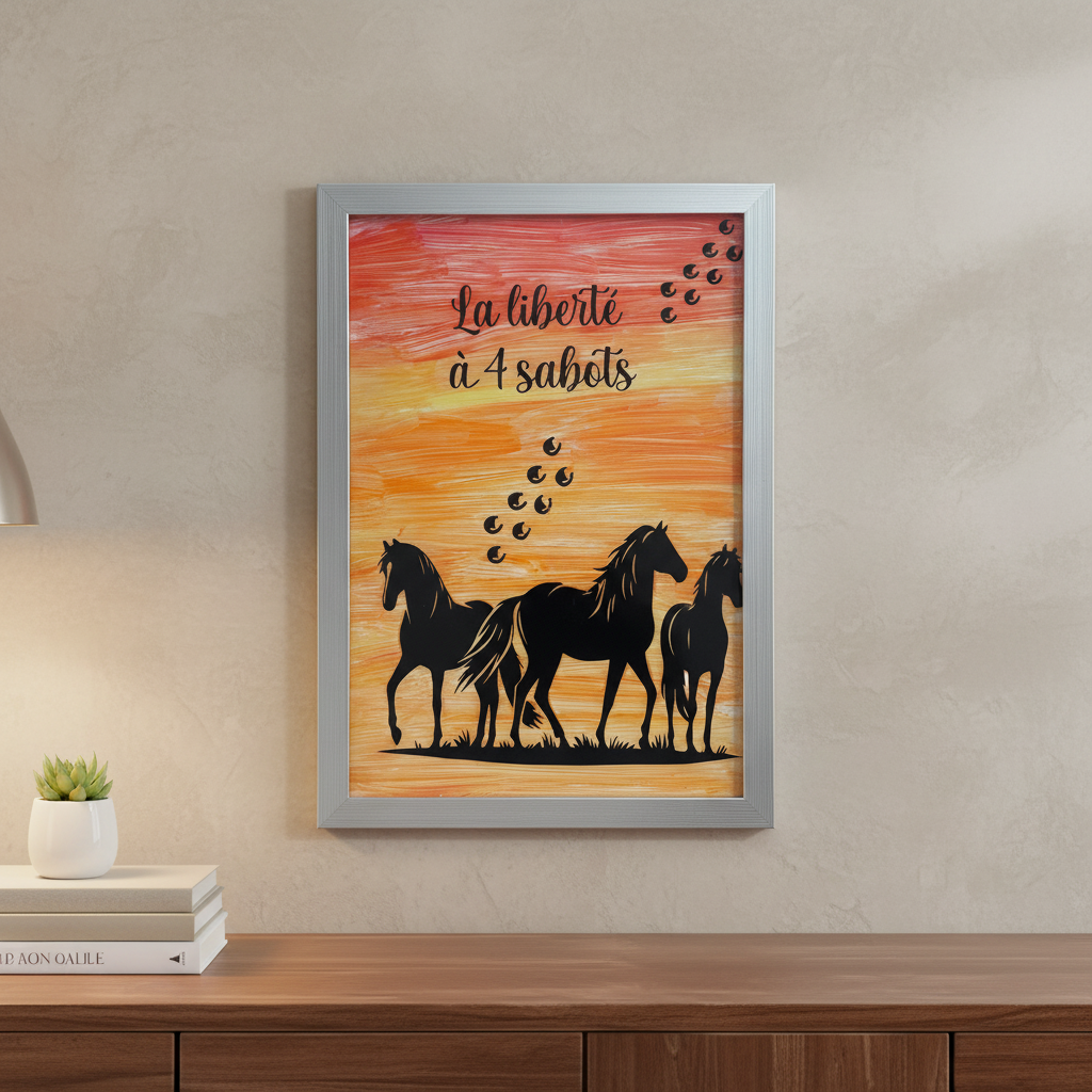 Tableau décoratif – “La liberté à 4 sabots” – Silhouette chevaux – Déco murale élégante