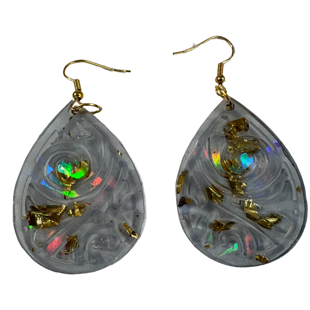 Boucles d’oreilles holographiques en résine – Création artisanale originale- réf 140