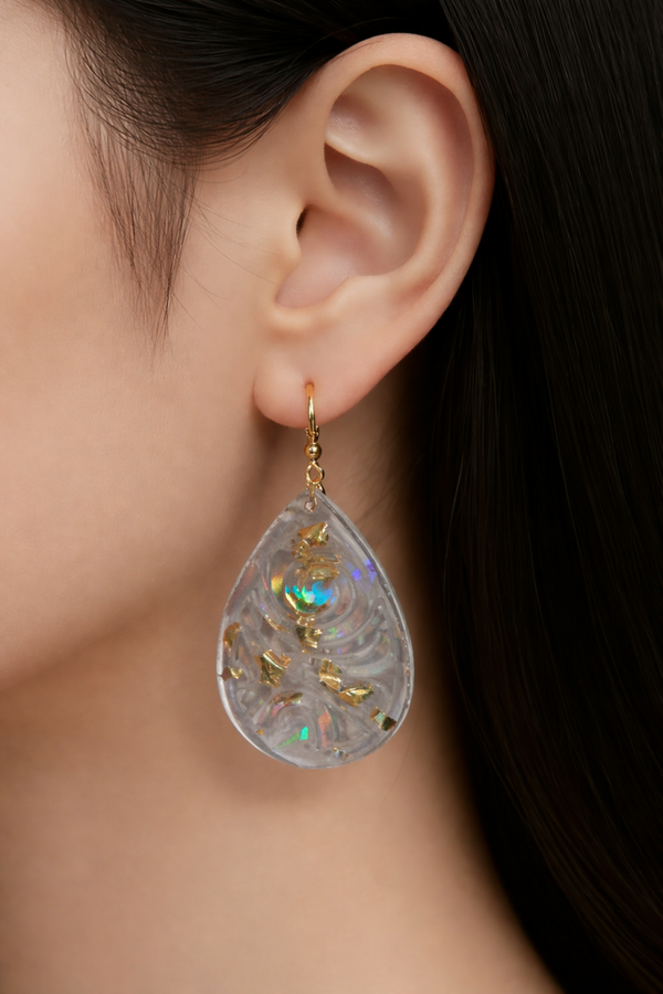 Apportez une touche de lumière et de modernité à votre style avec ces boucles d’oreilles en résine holographique, entièrement réalisées à la main. Leur forme goutte élégante et leurs reflets irisés captent la lumière pour un rendu unique et raffiné.