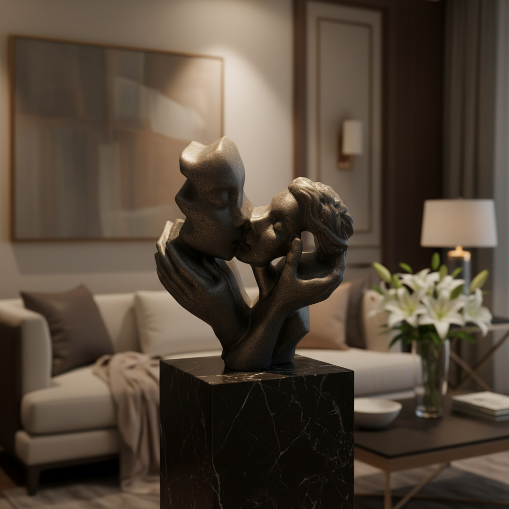 Exprimez l’amour et la complicité avec cette sculpture de couple en résine, au design moderne et épuré.