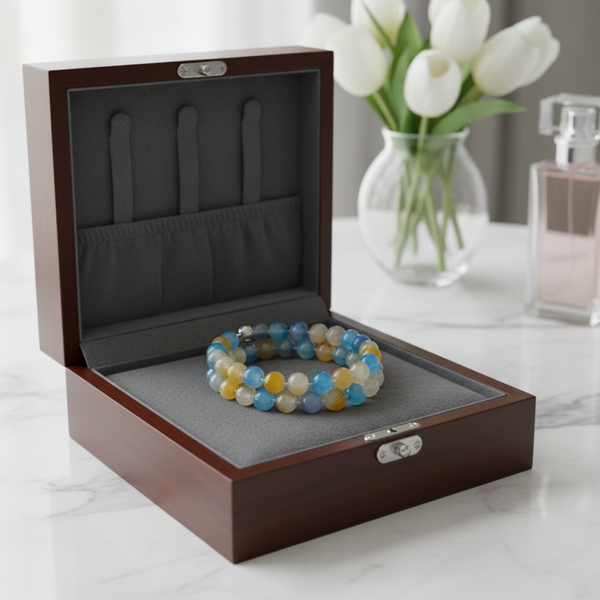 Son harmonie de couleurs évoque la sérénité, la fraîcheur et l’énergie positive, faisant de ce bijou un accessoire à la fois élégant et intemporel.