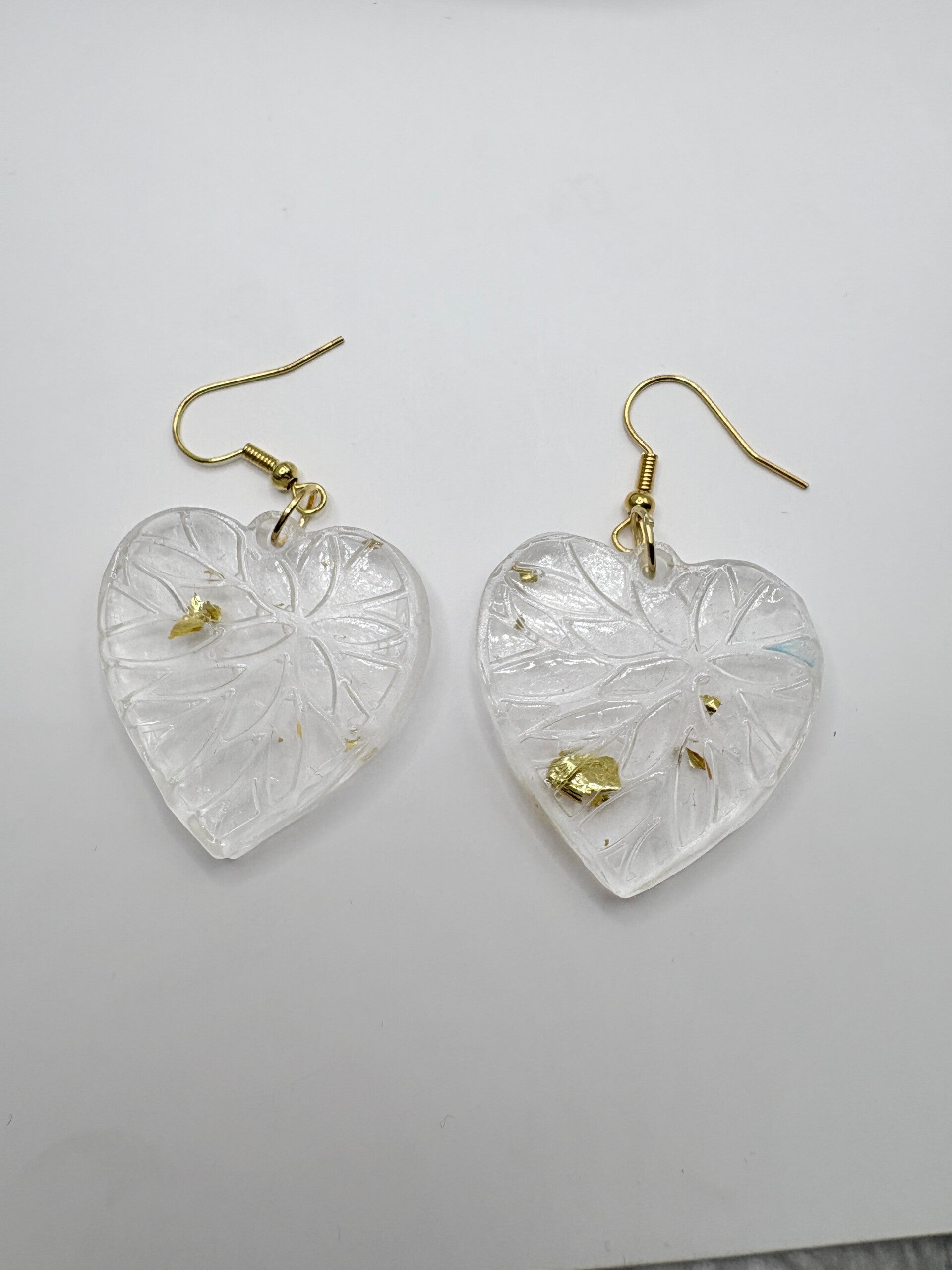Boucles d’oreilles cœur en résine transparente & éclats dorés - ref 271