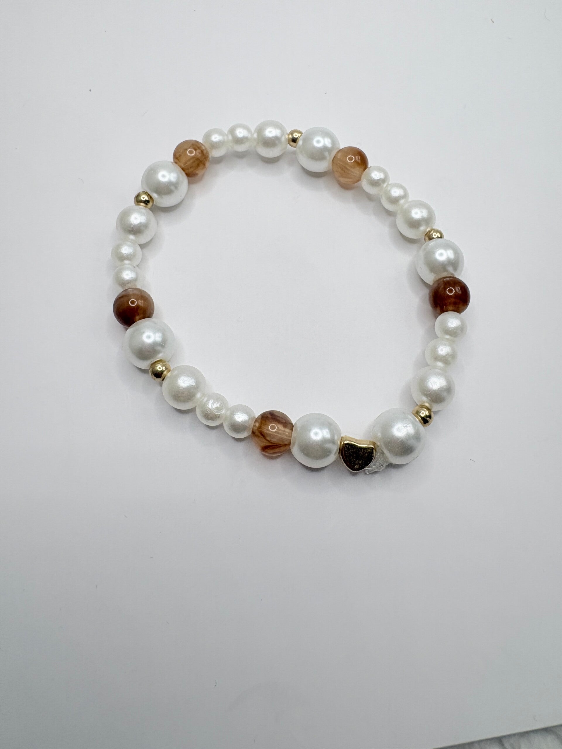 Bracelet artisanal en perles blanches nacrées et perles marron