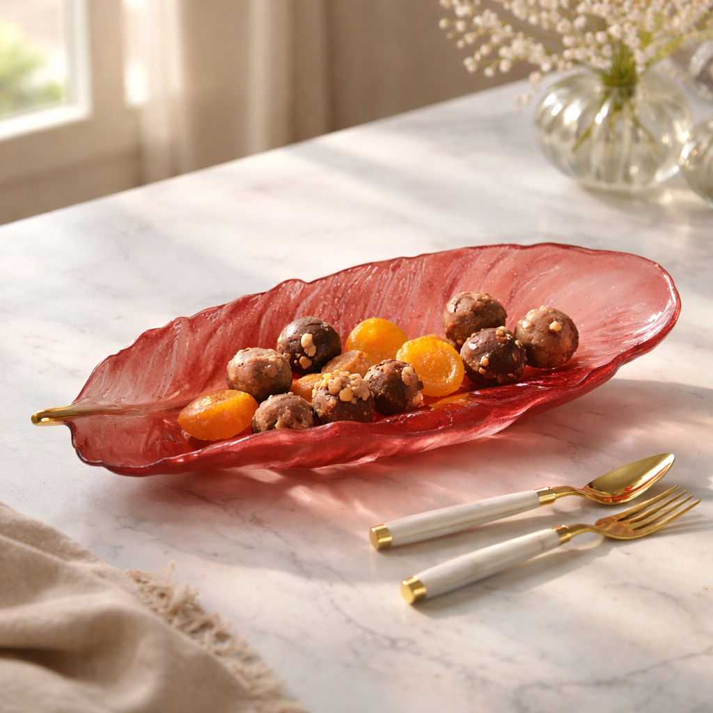 Vide-poche Feuille – Résine Rouge Pailletée (≈ 23 cm) - réf 284