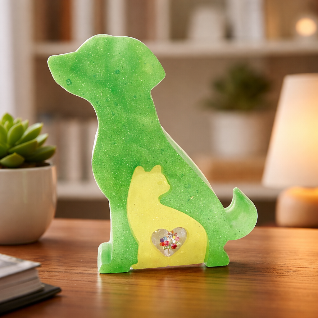 🐶🐱Adorable statuette en résine représentant un chien protecteur et son chat blotti à l’intérieur, symbole de complicité, d’amour et de lien indéfectible.