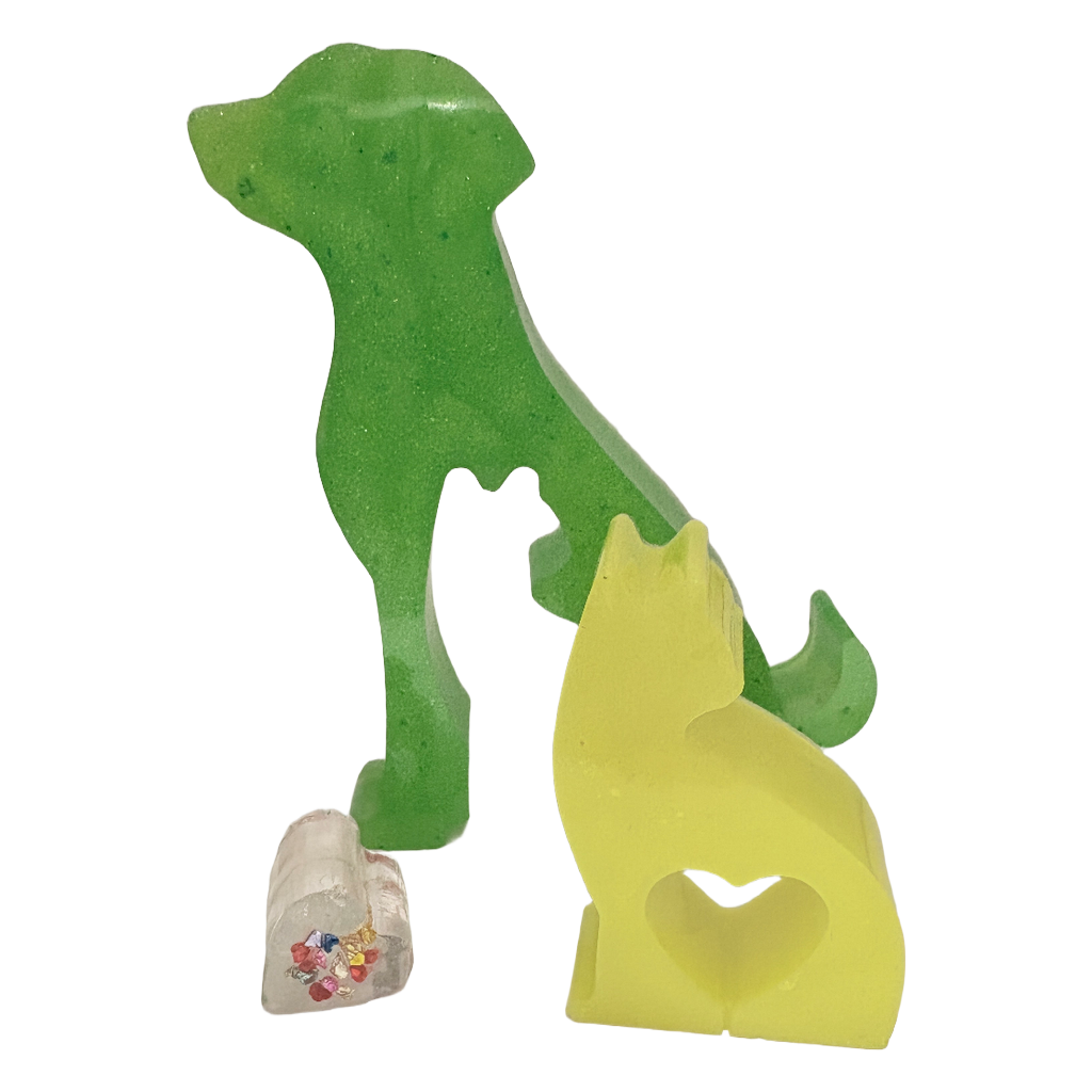Statue Chien & Chat – Résine Vert et Jaune - réf 290