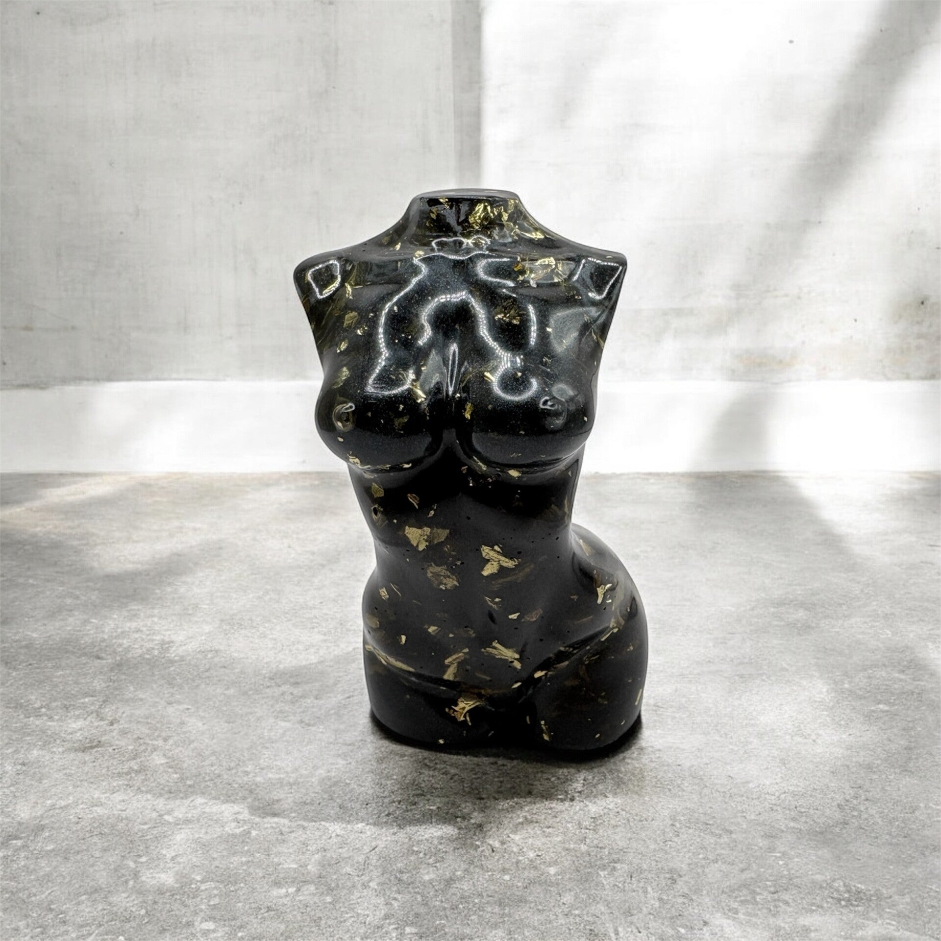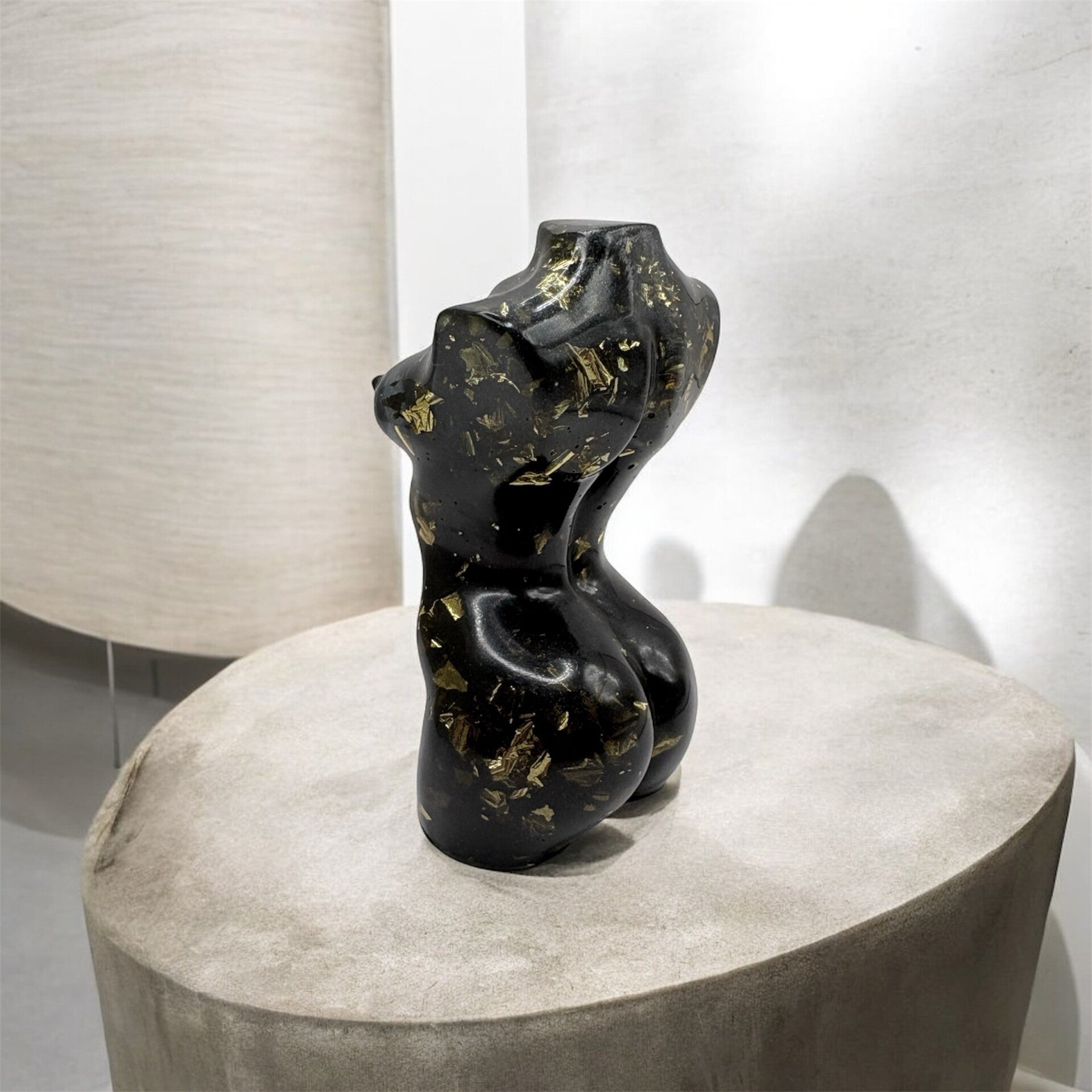 Sculpture Corps Féminin Noir & Feuilles Dorées - réf 310